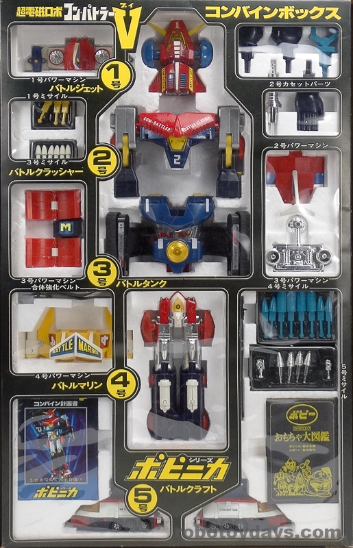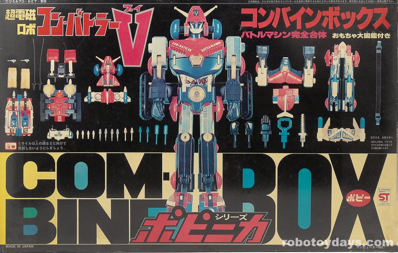 アニメ「超電磁ロボ コン・バトラーV  1976~1977年放送・全54話」に登場する5機のマシンが合体して完成する超電磁ロボ。