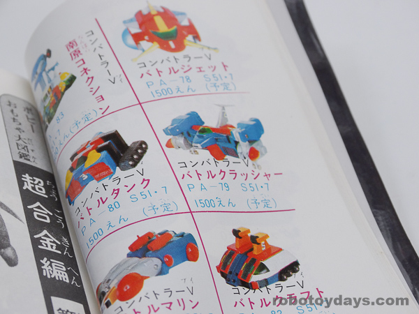 1976年までに発売された超合金やポピニカ、これから発売する商品の写真を価格や発売年と月まで合わせて表記。(試作品の写真も使用されています)