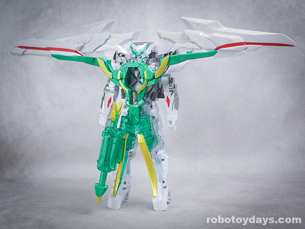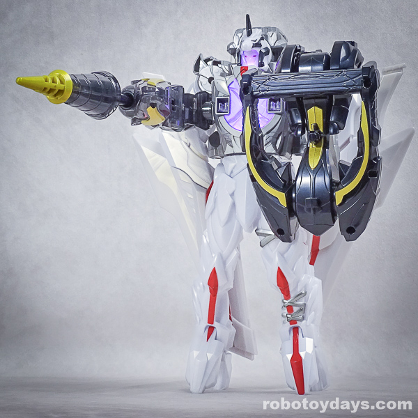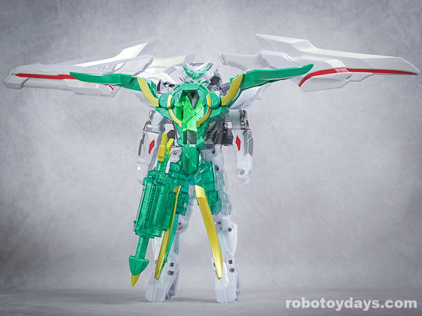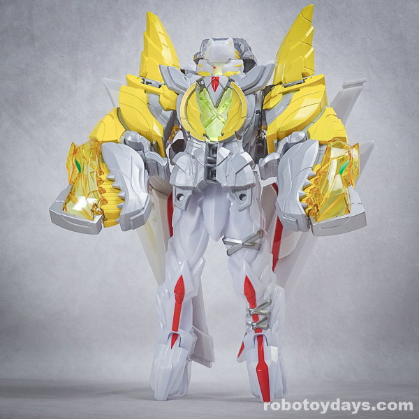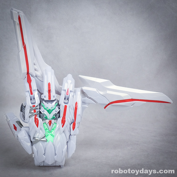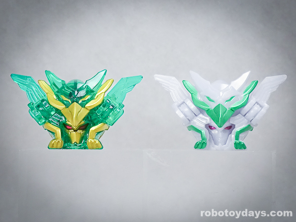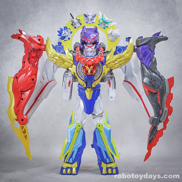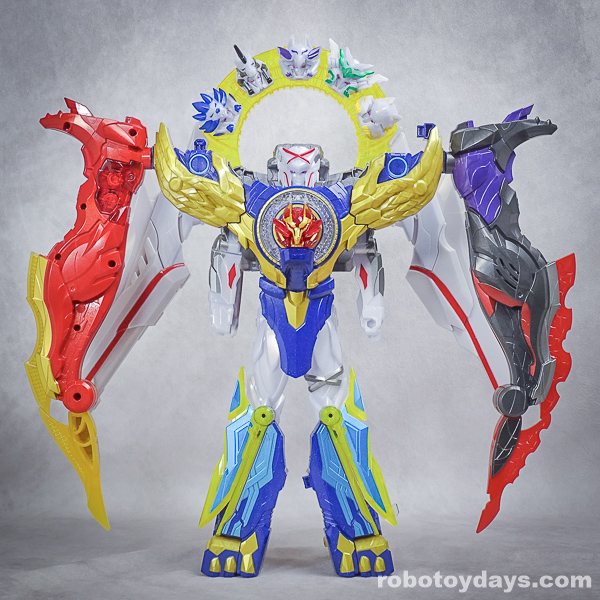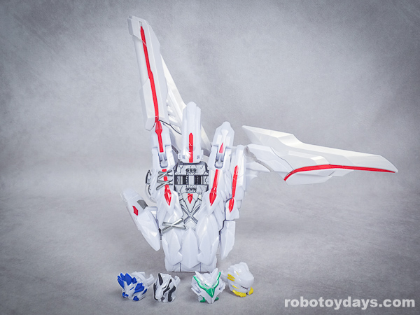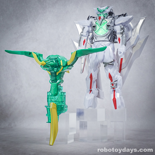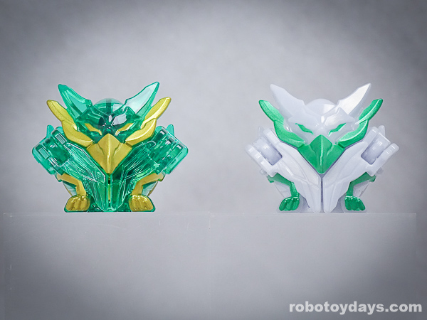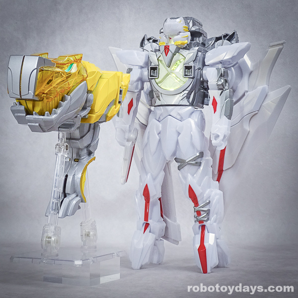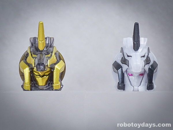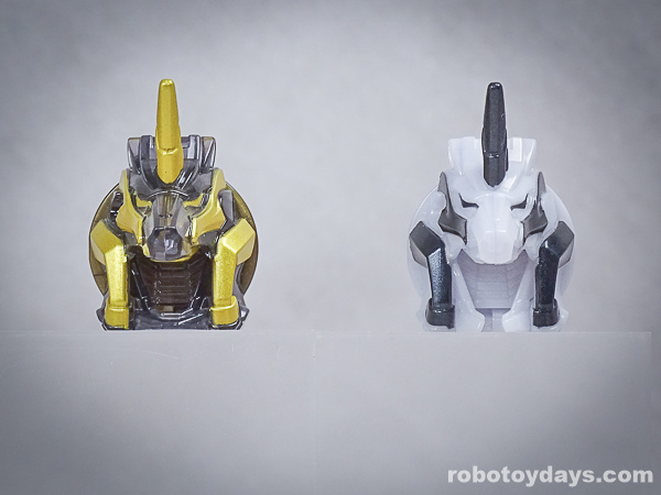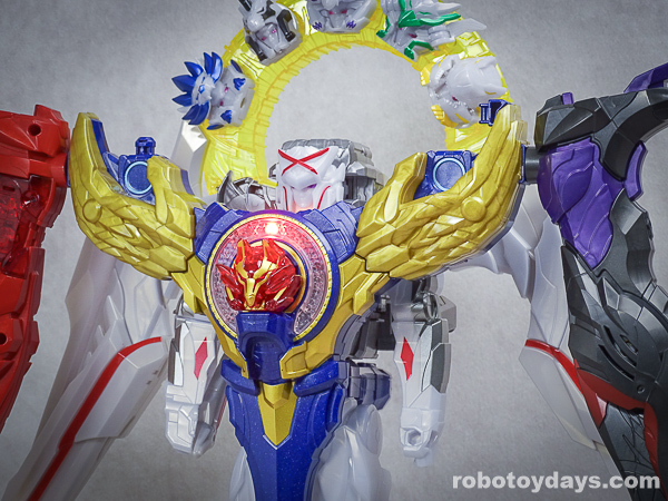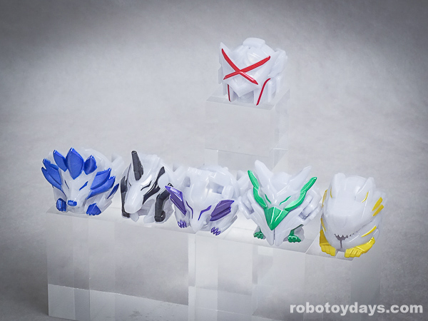 玩具公式では、それぞれ固有武器との合体状態がデフォルトですが、劇中映像では頭部変化のみ。