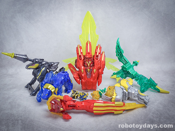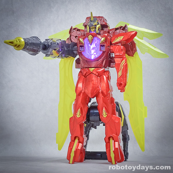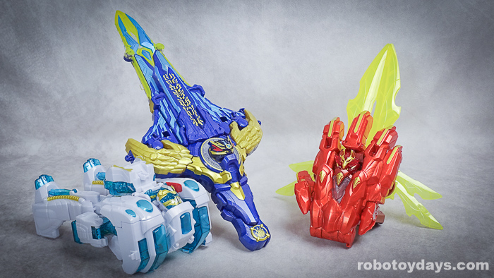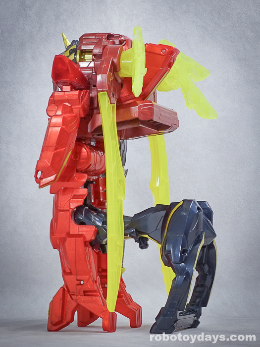 赤いテガソード素体に、剣を分解したアーマー着せる、アーマースーパー合体的な雰囲気。