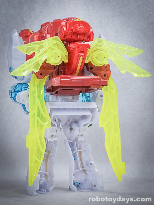 オリジンのアイデンティティ・ウイングを優先し、あえて余剰パーツがでる合体をさせています。