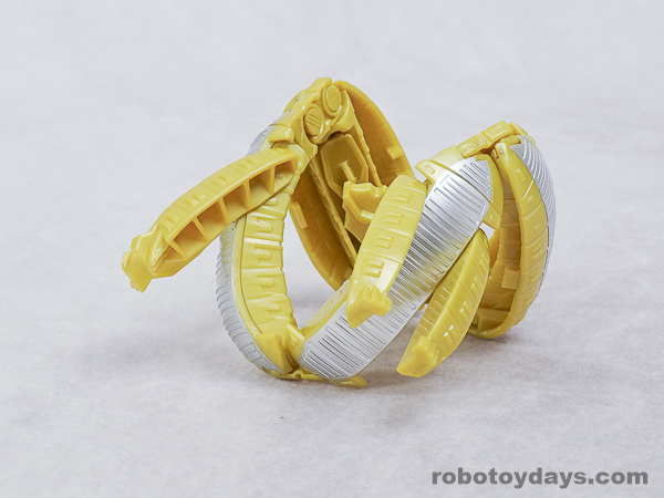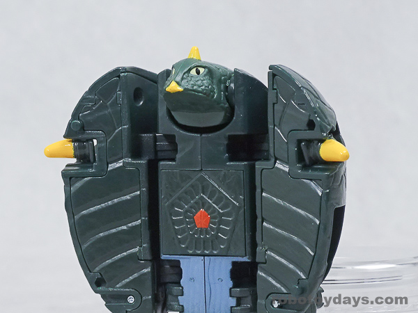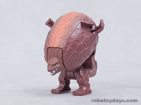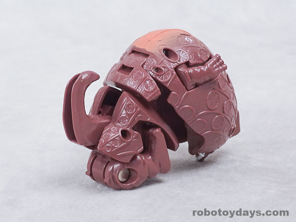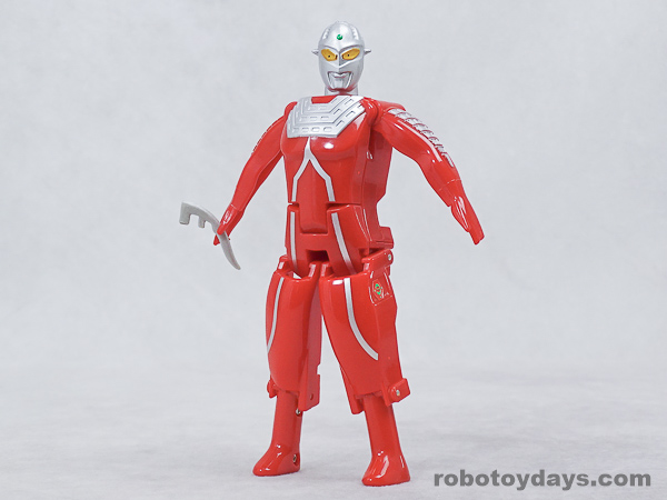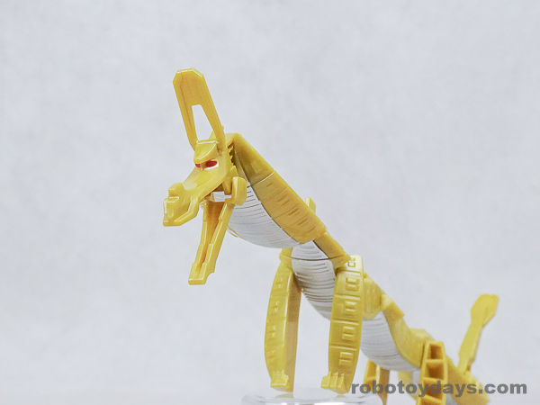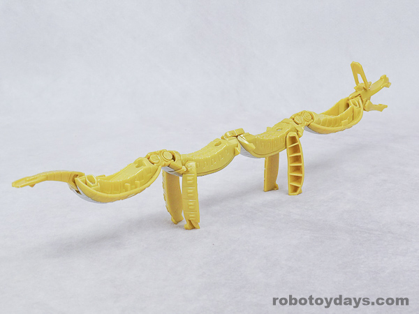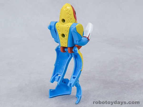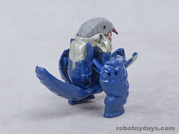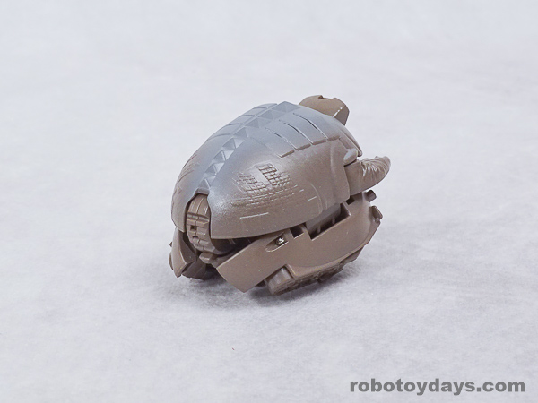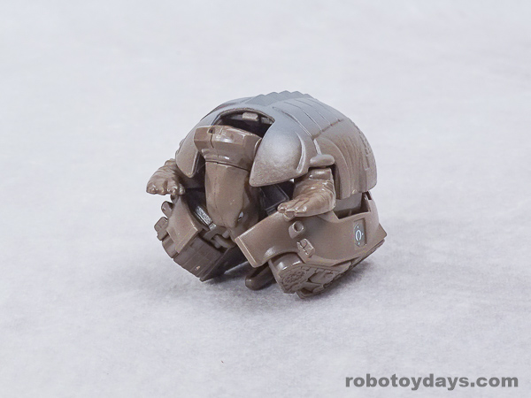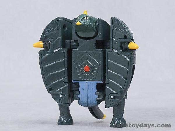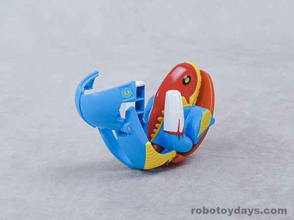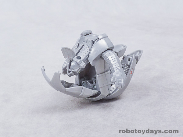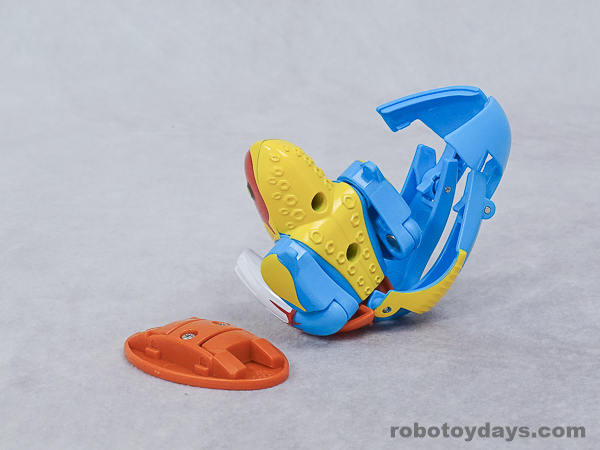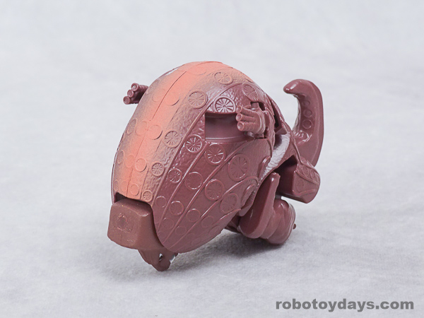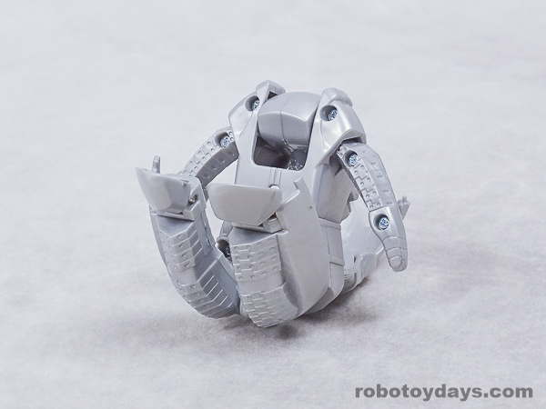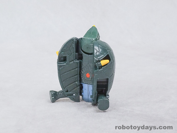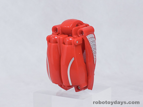 基本的な人型変形で、前部を開き頭部を出し、脚部を展開します。