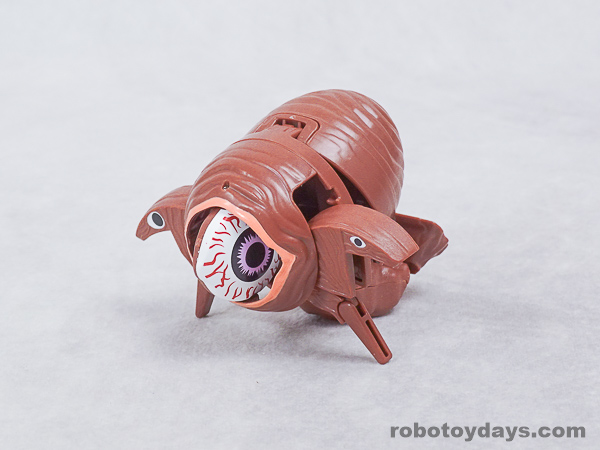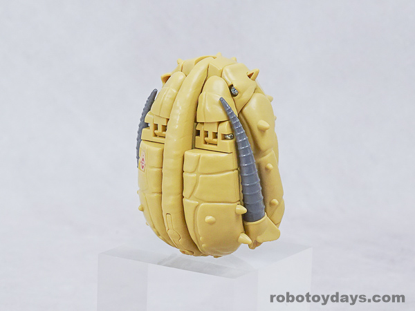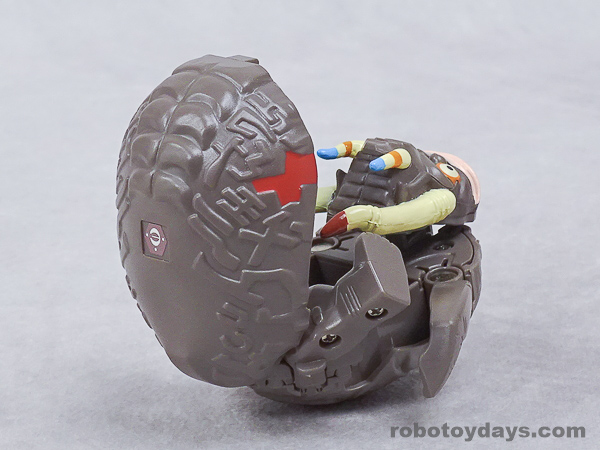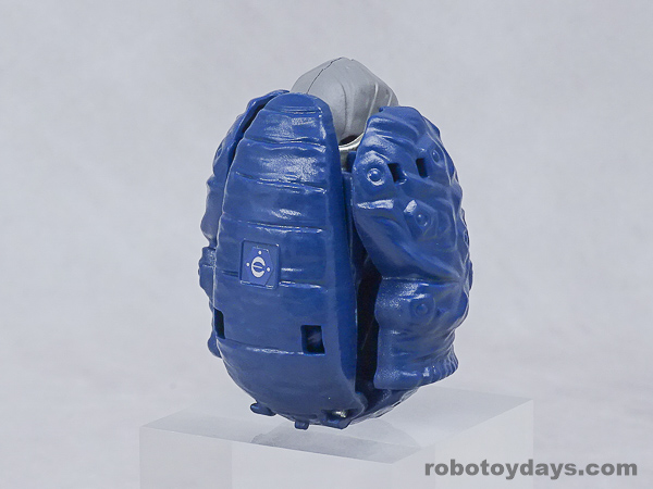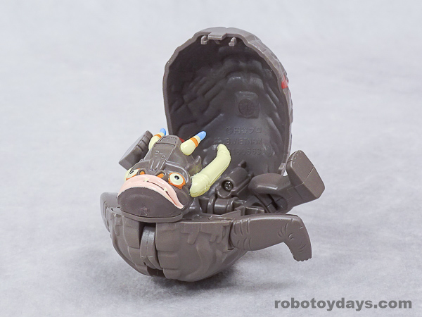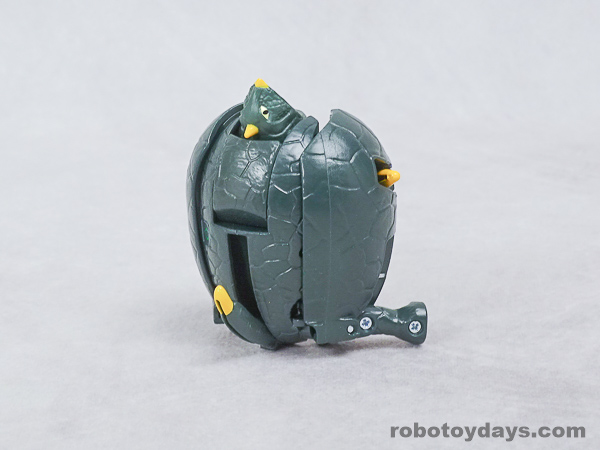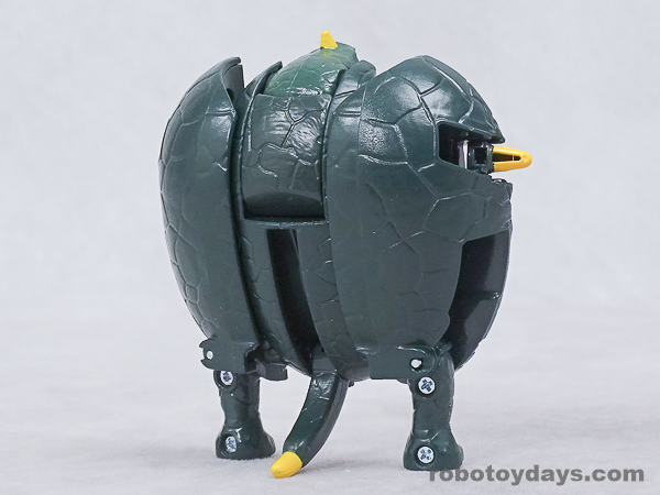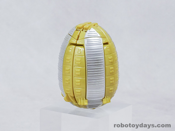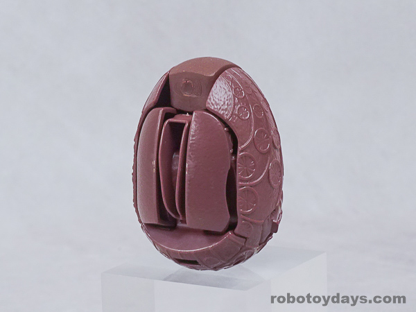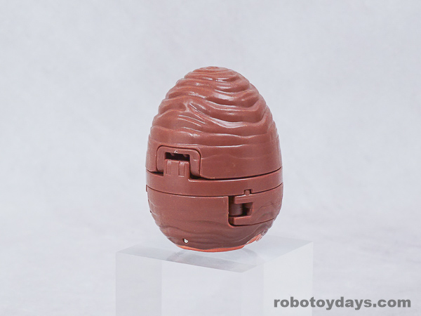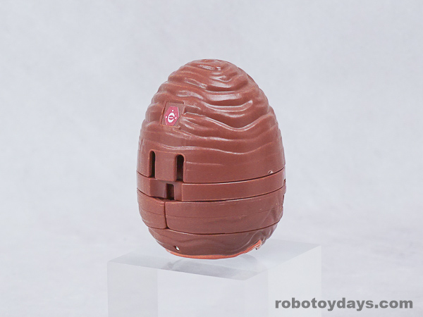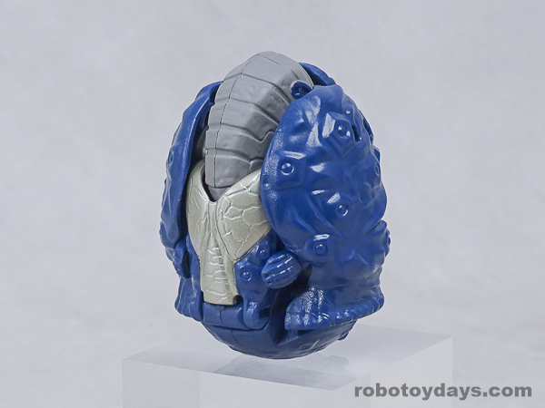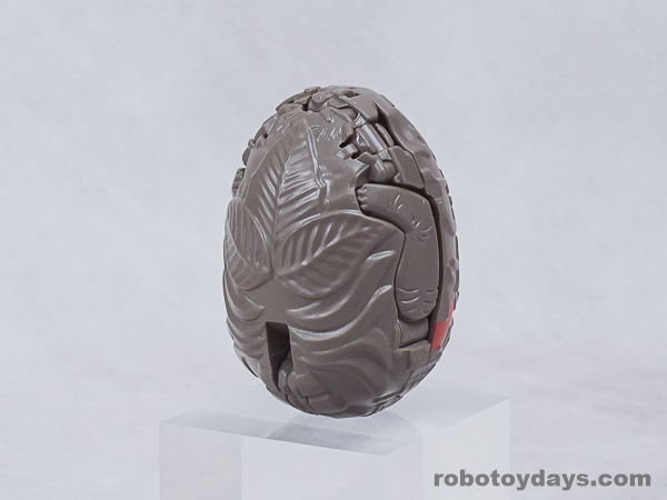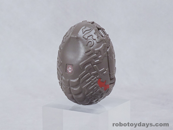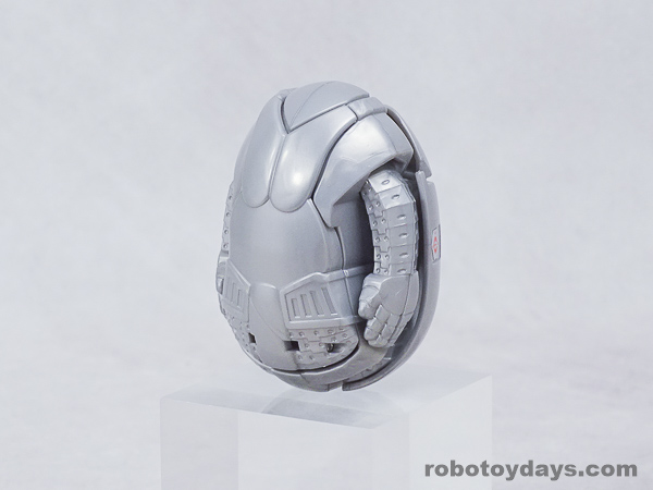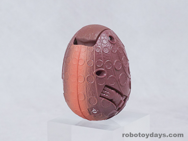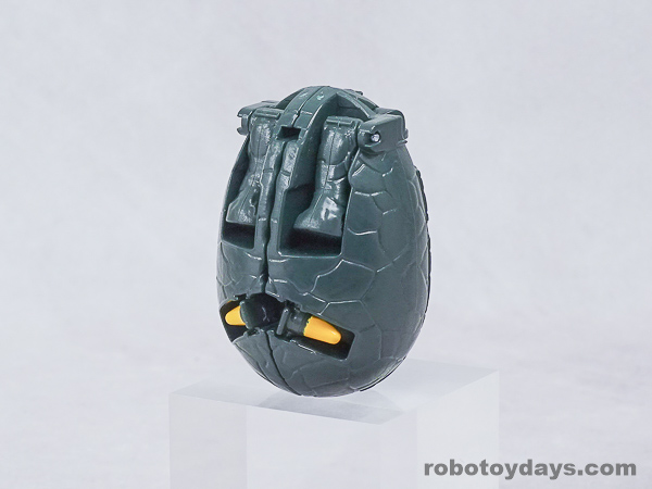 エッグの下部分を大きく開き、胴体と足を展開、さらに頭部も取り出します。